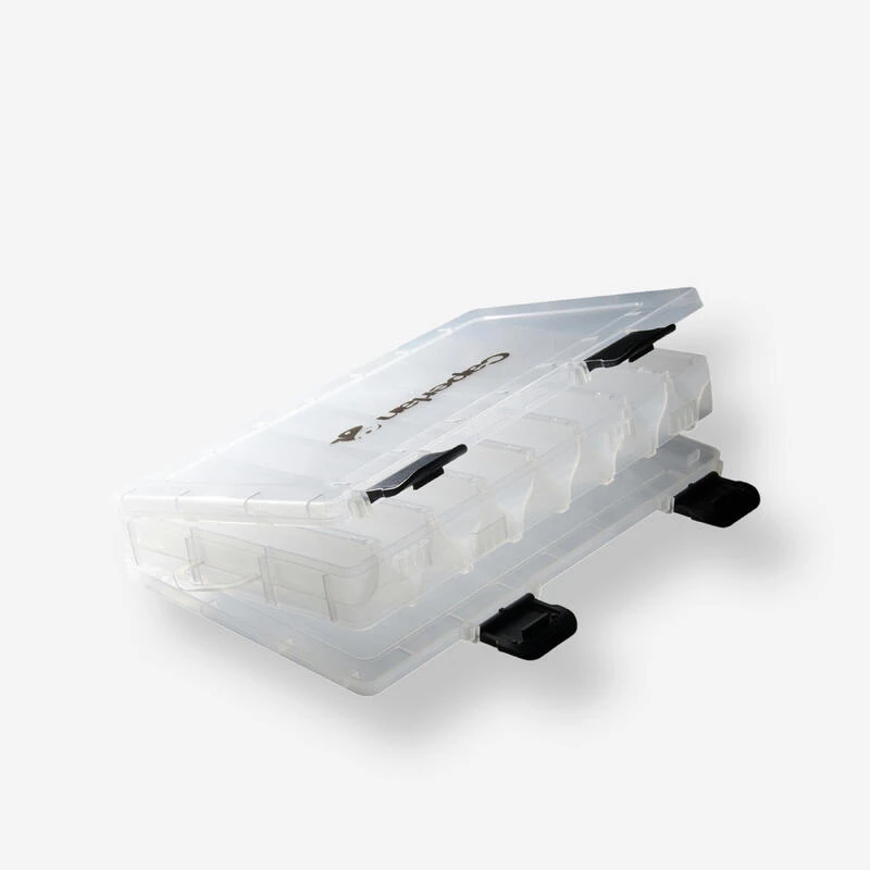 Cette boĂźte est conçue pour ranger et transporter ces leurres de pĂȘche.Cette boĂźte permet de ranger des leurres et cuillĂšres de toutes formes et tailles jusquâĂ 15 cm.
